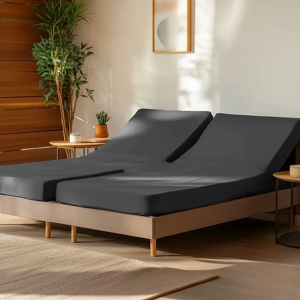 Ce drap housse est conçu pour les sommiers avec tête et pieds relevables pour 2 matelas articulés de 70 cm, 80 cm ou 90 cm de largeur chacun.Le bonnet est de 30 cm, et avec ses élastiques aux 4 coins, il s’adaptera parfaitement à vos matelas entre 25 cm et 30 cm de hauteur. Doté du traitement Easy Care qui est un traitement appliqué au linge de lit pour faciliter l’entretien et réduire le froissage. Le repassage sera beaucoup plus facile. Notre percale de coton est tissée en utilisant des cotons très fins, de qualité supérieure avec de longues fibres. Le tissage serré en 80 fils/cm² (200 TC au inch²) est idéal pour assurer une douceur et un confort d’utilisation exceptionnels. Elle est très appréciée en literie pour son toucher soyeux, doux et sa résistance au temps. Coordonnez votre linge de lit avec les housses de couette et taies d’oreiller de la même gamme en recherchant Soft Percale Sensei.Pour une meilleur protection de votre matelas, optez pour nos protèges matelas en faisant la recherche Sensei Protection.Caractéristiques du linge de lit SOFT PERCALE Sensei Maison :100% percale de coton très fin de qualité supérieure80 fils/cm² (plus le tissage est élevé, meilleur est sa résistance et son toucher)Hauteur des bonnets : 30cmFacile d’entretien – Lavable en machine 60° – Séchage modéréDepuis des décennies, Sensei Maison vise à rendre vos intérieurs cocooning. Au travers de nos collections tendances, uniques et design notre ambition a toujours été de privilégier un rapport qualité/prix le plus juste.En savoir plus :Ce produit est certifié de la norme OEKO-TEX Standard 100 – Cette certification vise à garantir la non-toxicité des textiles et des colorants