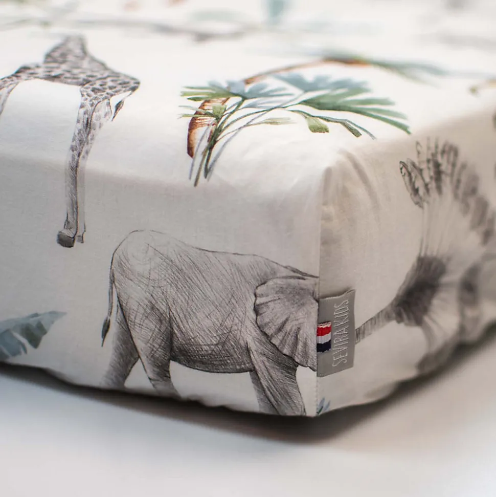 Pour de douces nuits saines et paisibles, offrez à votre enfant le drap housse en coton Safari confectionné avec expertise pour notre équipe en France