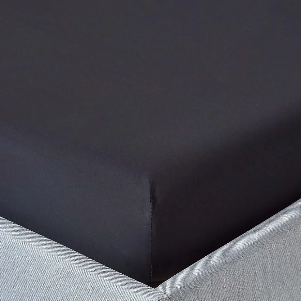 Drap-housse uni 140 x 190 cm 100 % coton égyptien 200 fils coloris noir – HOMESCAPES