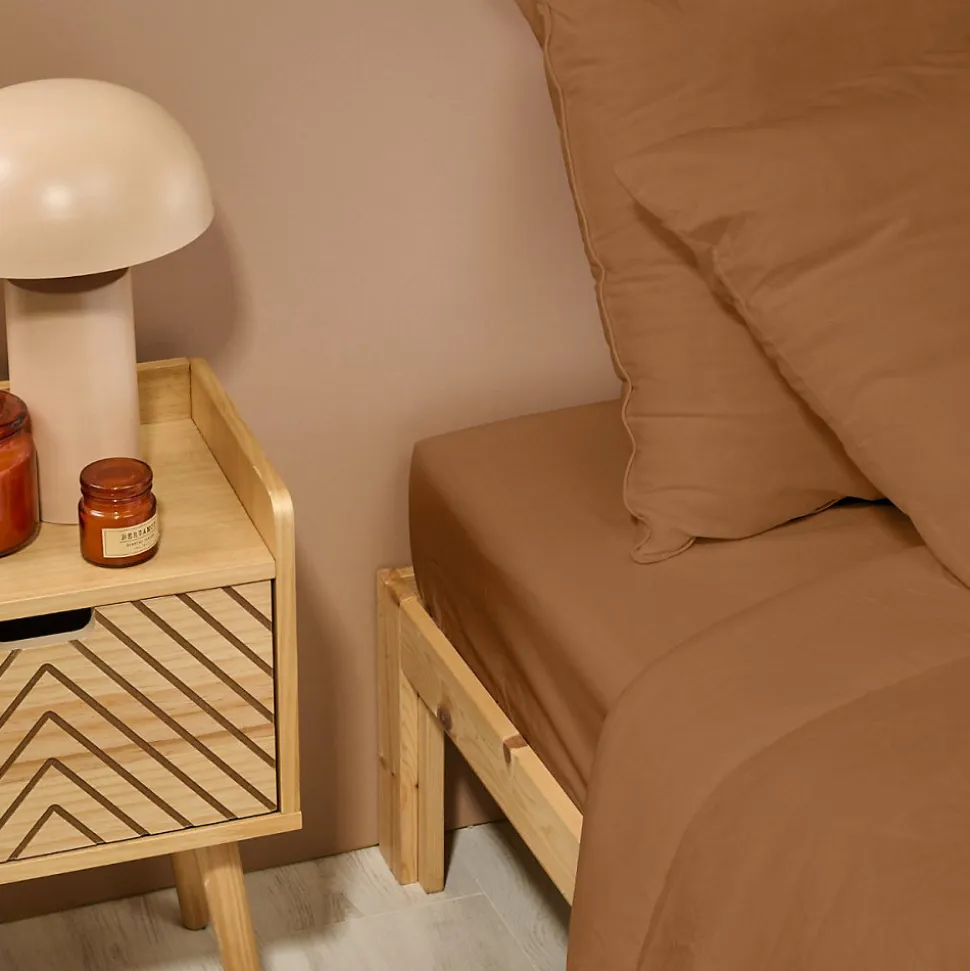 Drap Housse uni 180x200cm PERCALE TERRACOTTA