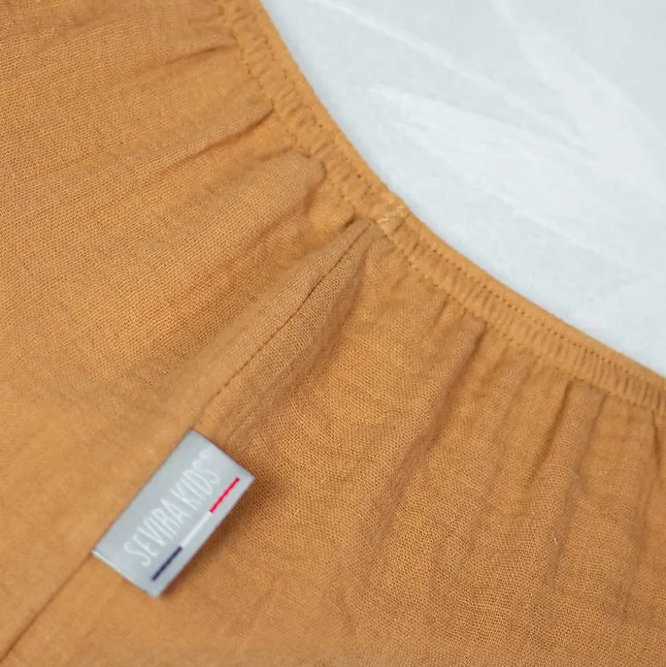 - Drap housse en gaze de coton, doux, respirant et certifié Oeko-Tex, idéal pour respecter la peau sensible de bébé.