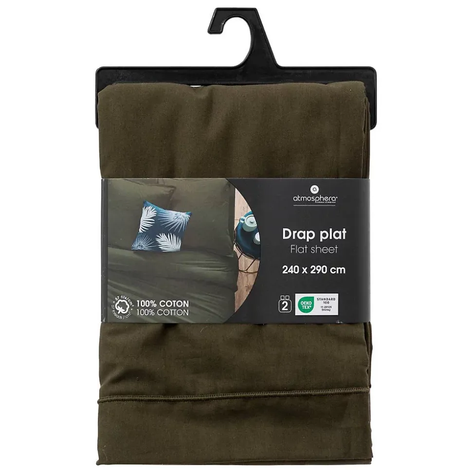 Vous voulez du linge de lit de qualité ? Alors, optez pour le drap plat en coton Atmosphera.Un drap confortableCe drap plat est en coton 57 fils/cm² pour vous offrir une qualité accessible. Avec ses dimensions généreuses, il s’adaptera très bien à un lit deux personnes. Il conservera sa douceur au fil des lavages jusqu’à 60°C.Associez votre drap plat en coton à un dessus de lit Atmosphera afin d’obtenir une literie soignée et accueillante.Le petit plus décoDes coussins vous permettront de laisser libre cours à votre imagination afin de les assortir avec une parure de lit.