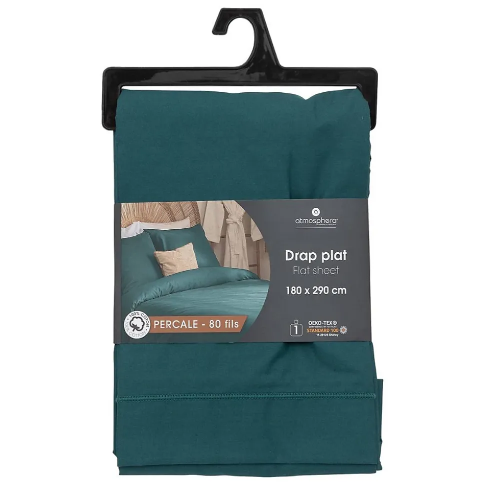 Adoptez le drap plat en percale Atmosphera et profitez d’un linge de maison à la fois esthétique et facile à vivre.Du linge de lit durableTrès agréable au toucher, ce drap plat en percale de coton se distingue par sa douceur, qui s’accentuera lavage après lavage. Pensé pour s’adapter à un grand couchage de 2 personnes, il se décline dans un coloris tendance que vous pourrez facilement coordonner à votre déco.Choisissez une jetée de lit Atmosphera pour compléter votre drap et profitez de nuits paisibles !Le petit plus décoComplétez votre déco avec des coussins et une tête de lit afin de composer un ensemble raffiné.