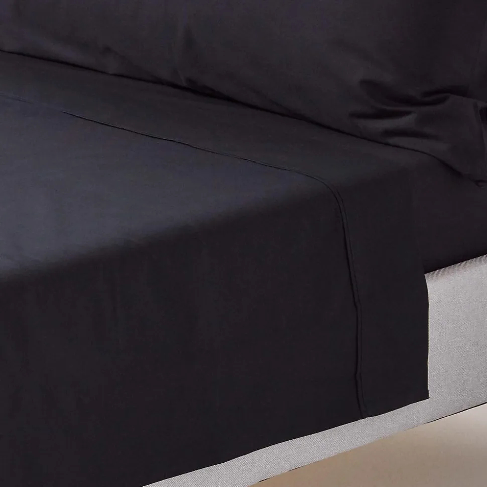 Drap plat uni 100 % coton égyptien 200 fils noir, 180×290 cm – HOMESCAPES