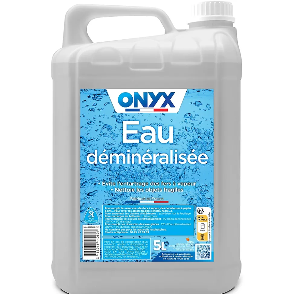 - L’eau déminéralisée Onyx s’utilise pour remplir les fers à repasser, les décolleuses à papier peint