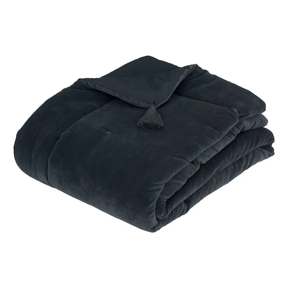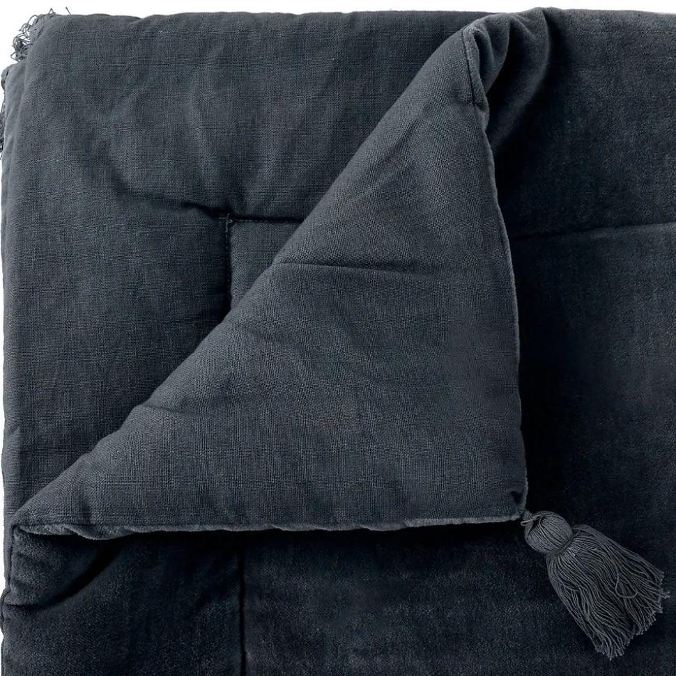 Craquez pour l’édredon « Night » Atmosphera et faites entrer une note délicate et authentique dans votre chambre à coucher !Un édredon sobre et chaleureuxRéalisé en velours de coton sur une face et en tissage de coton sur l’autre, cet édredon « Night » sera parfait en bout de lit pour sublimer une parure. Brodé de pompons dans les coins et surpiqué sur les bords, c’est un accessoire déco élégant et confortable.Pourquoi ne pas associer votre édredon « Night » à une tête de lit Atmosphera issue de la même collection ?Le petit plus décoChoisissez une parure de lit et des coussins que vous coordonnerez à cet édredon pour former un univers harmonieux.