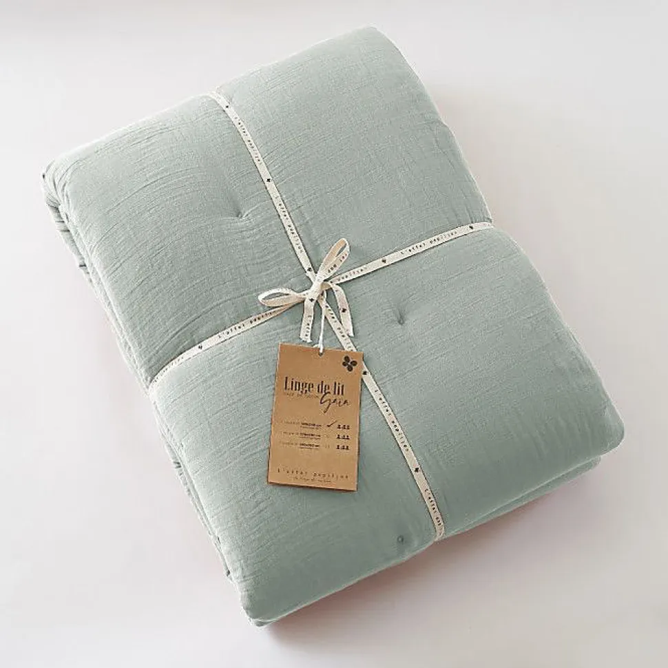 Edredon ou Bout de lit "Gaïa" toutes dimensions "Gaze de Coton" l'Effet Papillon - Gaia Eucalyptus - 180 x 240 cm