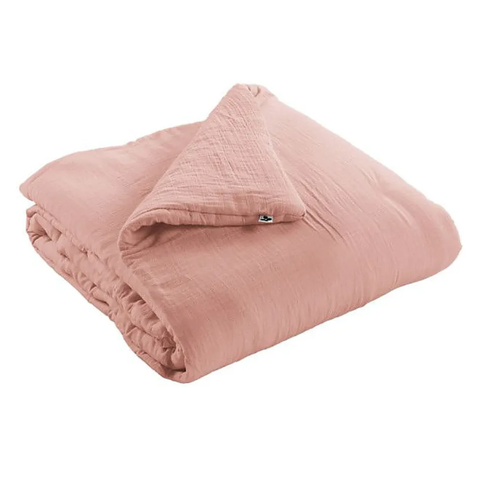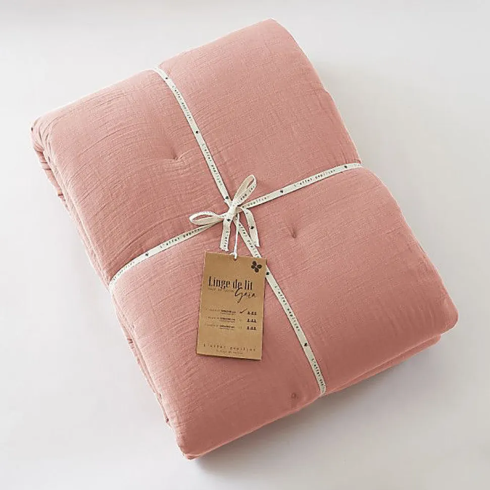 Edredon ou Bout de lit "Gaïa" toutes dimensions "Gaze de Coton" l'Effet Papillon - Gaia Rose Pêche - 180 x 240 cm