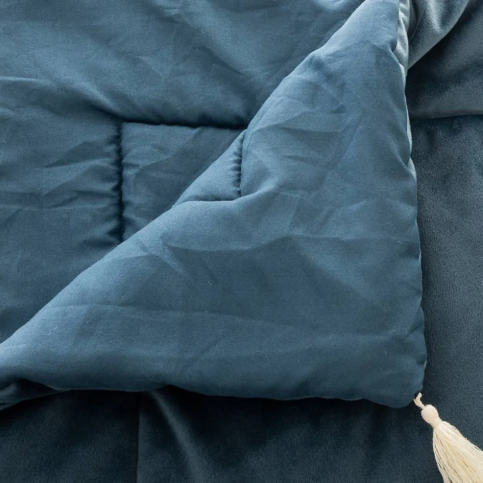 L’édredon « Sonia » Atmosphera sera le meilleur allié de vos soirées.Chaud et élégantTissu en velours et rembourrage en polyester pour conserver moelleux et légèreté, l’édredon « Sonia » peut être utilisé comme dessus de lit ou comme jeté de canapé pour donner un esprit chaleureux à votre intérieur. Ses pompons contrastants aux quatre coins ajoutent une pointe de chic et d’élégance.Le petit plus décoComplétez l’édredon « Sonia » par des coussins en velours Atmosphera disposés à proximité et assortis aux pompons de votre édredon.Produit labellisé OEKO-TEX