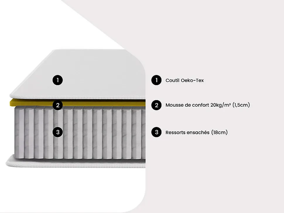 - Optez pour le confort de l’ensemble 140 x 190 cm sommier tapissier + matelas Ressorts ensachés épaisseur 20 cm – SONGE de Ysmée – Commandez dès maintenant !