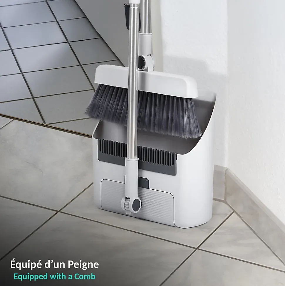 POLYVALENT – Ensemble complet avec balai, balai brosse et pelle pour un ménage rapide et efficace.ACCESSIBLE – Manche pivotant à 180° et tête ultra plate pour nettoyer sous les meubles sans effort.EFFICACE – Poils longs et souples du balai et brosse à poils durs pour un nettoyage en profondeur.PRATIQUE – Pelle basculante avec peigne intégré pour retirer cheveux et poils sans contact manuel. Tous les éléments se clipsent pour un rangement en position debout, gain de place assuré.CARACTERISTIQUES – Matières :Polypropylène, PET, ABS, Acier inoxydable. Dimensions Support et Balai 124 x 9.5 x 25.5 cm (en position rangée) – Balai : 124 x 16 cm – Support : 120 x 25,5 cm – Poids : 1,1 Kg