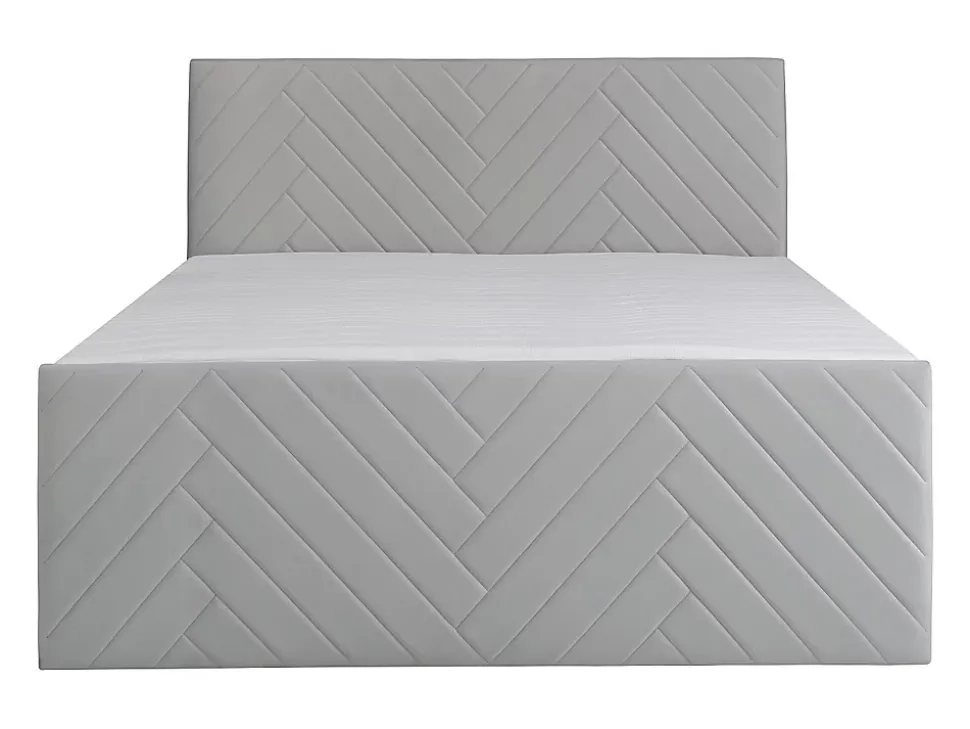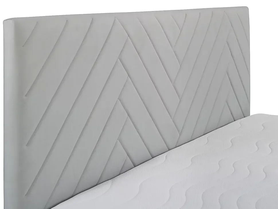 - Craquez pour le confort de l’ensemble literie déco coffre 160 x 200 cm queen size Velours Gris clair – Tête de lit + sommier + matelas + surmatelas MAKANA de Ysmée. Essayez-le vite !