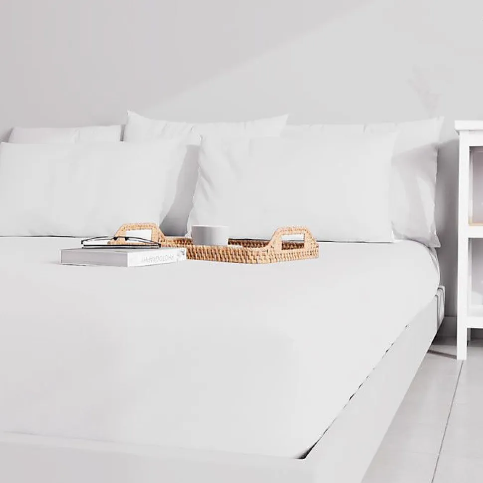 Pack complet de literie pour lit 2 places en 140×190 cm (7 Pieces). Prix malin. Couleur: Brique. Se compose de: – 1 Couette blanche DOUCEUR 220×240 cm (Enveloppe: microfibre, 350 gr). – 2 Oreillers blancs CONFORT 60×60 cm Anti-acarien (Enveloppe: microfibre, Garnissage: fibre creuse siliconnée 550 Gr). – 1 Drap housse 140×190 cm ZZZ blanc (55% polyester, 45% coton), Bonnet de 25 cm.. – 1 Housse de couette brique 240