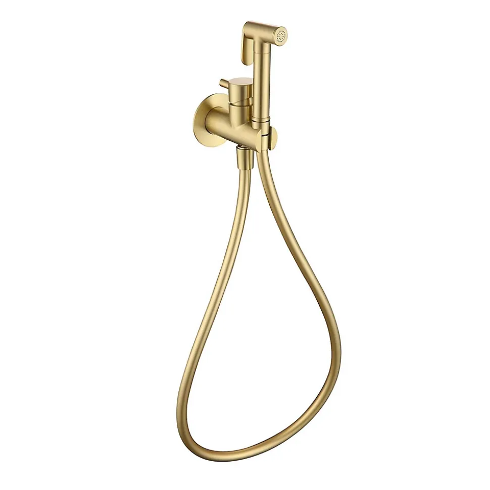 Ensemble douchette hygiénique WC SKY BATH – Série HARMONY. Ce robinet est disponible en 4 coloris : black gun metal, noir mat, nickel brossé et or brossé.· Finition : or brossé+ Corps en acier inoxydable S304 (sans plomb) : ce matériau confère une qualité optimale à ce mitigeur car il lui confère une haute résistance et protection contre la rouille et la corrosion+ Traitement PVD : La PVD (Dépôt Physique en phase Vapeur) est un procédé spécial utilisé pour les revêtements décoratifs et fonctionnels. Il confère au mitigeur une facilité de nettoyage, une résistance aux produits corrosifs et aux détergents, une brillance allongée et une protection contre les impacts.