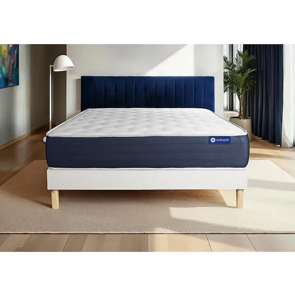 ACTISOM est une marque française développée en partenariat avec les plus grands experts européens du sommeil et de la literie. Après plusieurs années de recherche et de développement, nous avons mis au point des technologies innovantes (Actisoft – Actifresh – Acticell) afin de vous garantir d’excellentes nuits de sommeil. Tous nos matelas sont garantis 7ans et leur fabrication bénéficie d’un contrôle qualité très performant. Nos usines respectent les normes technologiques et environnementales européennes en vigueur.L’avis de notre expert: Grace aux 5 zones de confort, le latex et la mousse à mémoire de forme, le matelas Actilatex SLEEP épouse votre morphologie et soulage les points de pression. Doté de la technologie Actifresh, il beneficie d’une parfaite aération et évacue l’humidité pour un couchage sain. Il vous garantie un confort optimal pour une complète relaxation au fil des saisons grâce à ses 2 faces de couchages.• Epaisseur 22 cm• Plateau pour les 2 faces 3cm Latex + Mousse polyuréthane à mémoire de forme + mousse polyuréthane actiSoft• Bloc mousse polyuréthane haute densité 16cm• Coutil 100% polyester micro-perforé ultra respirable• Confort Equilibré• Type de sommier : Tapissier à lattes démontable à assembler soi même• Épaisseur : 14 cm• Structure et traverses de renfort en pin massif• 15 lattes multiplis• Garnissage fibres 100% polyester 120G/M2• Tissu maille 100% polyester 260G/M2• Pieds : Bois 15cm fournis• Montage facile : le montage pourra être effectué par une personne seule en seulement 10 minutes • Epaisseur 22 cm• Plateau pour les 2 faces 3cm Latex + Mousse polyuréthane à mémoire de forme + mousse polyuréthane actiSoft• Bloc mousse polyuréthane haute densité 16cm• Coutil 100% polyester micro-perforé ultra respirable• Confort Equilibré• Type de sommier : Tapissier à lattes démontable à assembler soi même• Épaisseur : 14 cm• Str