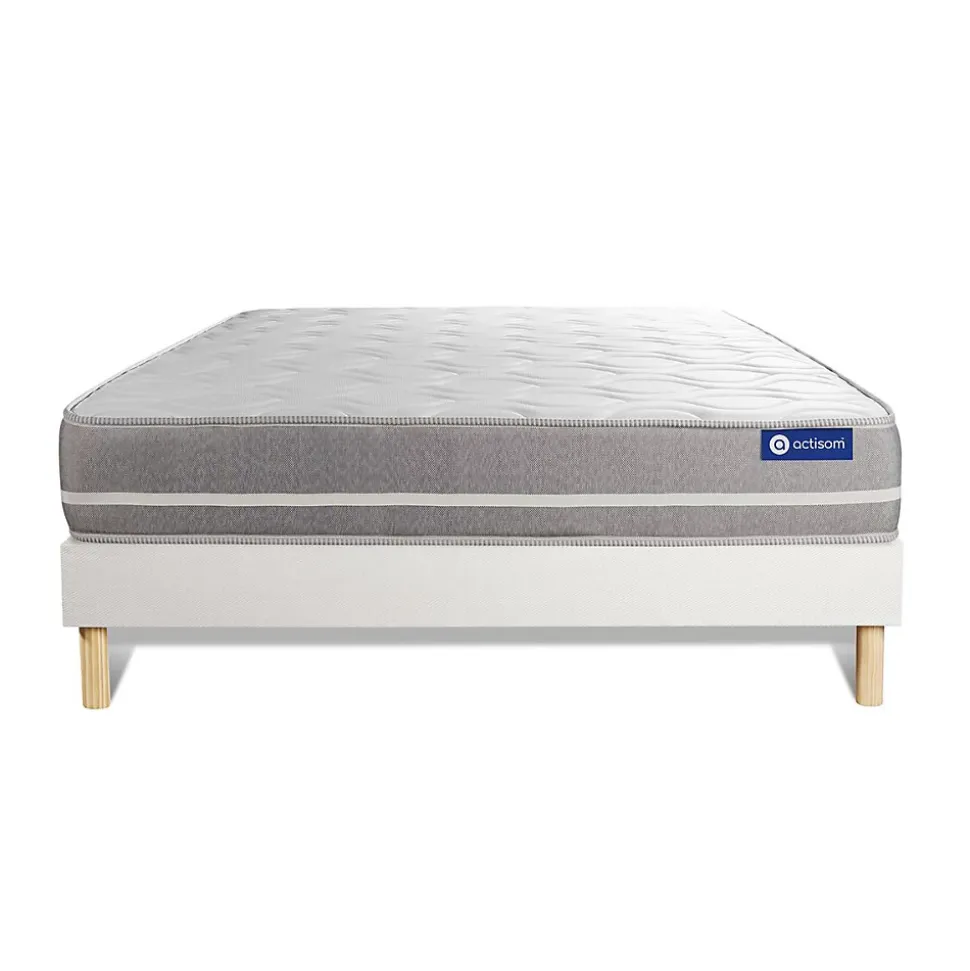 ACTISOM est une marque française développée en partenariat avec les plus grands experts européens du sommeil et de la literie. Après plusieurs années de recherche et de développement, nous avons mis au point des technologies innovantes (Actisoft – Actifresh – Acticell) afin de vous garantir d’excellentes nuits de sommeil. Tous nos matelas sont garantis 7ans et leur fabrication bénéficie d’un contrôle qualité très performant. Nos usines respectent les normes technologiques et environnementales européennes en vigueur.L’avis de notre expert: le matelas Actilatex TOUCH bénéficie d’un confort équilibré. Il est composé de 3 technologies : Latex, mousse Actisoft et mousse à mémoire de forme qui épouse les formes naturelles du corps et contribue à soulager les points de pression. Cette association de technologies permet de bénéficier d’une parfaite indépendance de couchage. Elle vous assure donc une totale liberté de mouvement.• Epaisseur 20 cm• Plateau pour les 2 faces 3cm Latex + Mousse polyuréthane à mémoire de forme + mousse polyuréthane actiSoft• Bloc mousse polyuréthane haute densité 14cm• Coutil 100% polyester micro-perforé ultra respirable• Confort Equilibré• Type de sommier : Tapissier à lattes démontable à assembler soi même• Épaisseur : 14 cm• Structure et traverses de renfort en pin massif• 2×15 lattes multiplis• Garnissage fibres 100% polyester 120G/M2• Tissu maille 100% polyester 260G/M2• Pieds : Bois 15cm fournis• Montage facile : le montage pourra être effectué par une personne seule en seulement 10 minutes • Epaisseur 20 cm• Plateau pour les 2 faces 3cm Latex + Mousse polyuréthane à mémoire de forme + mousse polyuréthane actiSoft• Bloc mousse polyuréthane haute densité 14cm• Coutil 100% polyester micro-perforé ultra respirable• Confort Equilibré• Type de sommier : Tapissier à lattes démontable à assembler soi même• Épaisseur : 14 cm• Struc