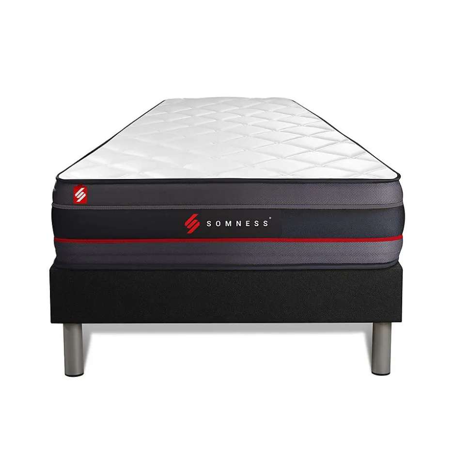 L’un des meilleurs modèles de la marque SOMNESS. L’alliance parfaite d’un accueil à mémoire de forme avec un soutien haute densité 5 zones de confort. Il dispose d’une maxi épaisseur de 24cm et est doté de la technologie Freshair qui permet une aération optimale. Le matelas REGEN est le matelas idéal.- Type de matelas : Mémoire de forme- Epaisseur : 24 cm- Confort : ferme- Accueil : Enveloppant avec 2,5 cm de mousse polyuréthane à mémoire de forme + soft- Soutien : 16cm de mousse polyuréthane- Indépendance de couchage : Excellente- Coutil 100% polyester microperforé ultra-respirable- Plate-Bande en tissu 3D micro-perforé 100% Polyester pour optimiser l’aération du matelas- Face de couchage : Réversible- Densité : 55 kg/m3- Certification : Oeko-Tex- Sommier tapissier- Multi 12 lattes en peuplier massif- Structure et traverses de renfort en peuplier massif- Garnissage fibres 100% polyester 120G/M2- Tissu Maille 100% polyester 260G/M2- Toile de fond anti-poussières 100% polyester- Hauteur 14cm + Pieds acier 15cm – Type de matelas : Mémoire de forme- Epaisseur : 24 cm- Confort : ferme- Accueil : Enveloppant avec 2,5 cm de mousse polyuréthane à mémoire de forme + soft- Soutien : 16cm de mousse polyuréthane- Indépendance de couchage : Excellente- Coutil 100% polyester microperforé ultra-respirable- Plate-Bande en tissu 3D micro-perforé 100% Polyester pour optimiser l’aération du matelas- Face de couchage : Réversible- Densité : 55 kg/m3- Certification : Oeko-Tex- Sommier tapissier- Multi 12 lattes en peuplier massif- Structure et traverses de renfort en peuplier massif- Garnissage fibres 100% polyester 120G/M2- Tissu Maille 100% polyester 260G/M2- Toile de fond anti-poussières 100% polyester- Hauteur 14cm + Pieds acier 15cm