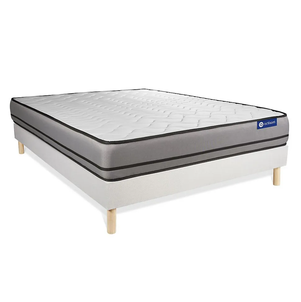 ACTISOM est une marque française développée en partenariat avec les plus grands experts européens du sommeil et de la literie. Après plusieurs années de recherche et de développement, nous avons mis au point des technologies innovantes (Actisoft – Actifresh – Acticell) afin de vous garantir d’excellentes nuits de sommeil. Tous nos matelas sont garantis 7ans et leur fabrication bénéficie d’un contrôle qualité très performant. Nos usines respectent les normes technologiques et environnementales européennes en vigueur.Le modèle Actimemo NIGHT de la marque ACTISOM est doté de mousse à mémoire de forme sur les deux faces. Vos points de pressions sensibles sont réduits, votre positition de couchage est confortable en maximisant votre relaxation. Son ame haute densité vous apporte un soutien très ferme. Avec sa technologie Actifresh votre corps se régénère naturellement grâce à la thermorégulation des matières de garnissages.Epaisseur 20 cmPlateau pour les 2 faces 2,5cm Mousse polyuréthane à mémoire de forme + mousse polyuréthane actiSoftSoutien en mousse polyuréthane haute densité 15cmCoutil 100% polyester micro-perforé ultra respirableConfort Très FermeType de sommier : Tapissier à lattes démontable à assembler soi mêmeÉpaisseur :14 cmStructure et traverses de renfort en pin massif15 lattes multiplisGarnissage fibres 100% polyester 120G/M2Tissu maille 100% polyester 260G/M2Pieds : Bois 15cm fournisMontage facile : le montage pourra être effectué par une personne seule en seulement 10 minutes Epaisseur 20 cmPlateau pour les 2 faces 2,5cm Mousse polyuréthane à mémoire de forme + mousse polyuréthane actiSoftSoutien en mousse polyuréthane haute densité 15cmCoutil 100% polyester micro-perforé ultra respirableConfort Très FermeType de sommier : Tapissier à lattes démontable à asse