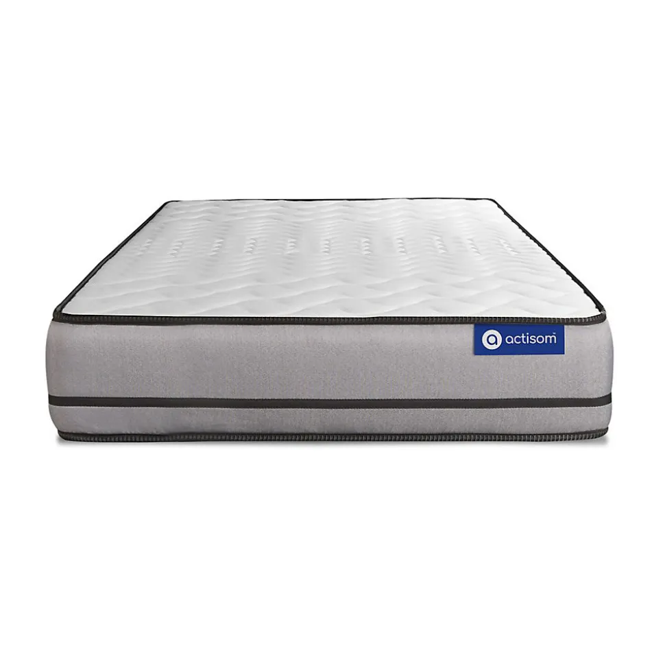 ACTISOM est une marque française développée en partenariat avec les plus grands experts européens du sommeil et de la literie. Après plusieurs années de recherche et de développement, nous avons mis au point des technologies innovantes (Actisoft – Actifresh – Acticell) afin de vous garantir d’excellentes nuits de sommeil. Tous nos matelas sont garantis 7ans et leur fabrication bénéficie d’un contrôle qualité très performant. Nos usines respectent les normes technologiques et environnementales européennes en vigueur.Le modèle Actimemo NIGHT de la marque ACTISOM est doté de mousse à mémoire de forme sur les deux faces. Vos points de pressions sensibles sont réduits, votre positition de couchage est confortable en maximisant votre relaxation. Son ame haute densité vous apporte un soutien très ferme. Avec sa technologie Actifresh votre corps se régénère naturellement grâce à la thermorégulation des matières de garnissages.Epaisseur 20 cmPlateau pour les 2 faces 2,5cm Mousse polyuréthane à mémoire de forme + mousse polyuréthane actiSoftSoutien en mousse polyuréthane haute densité 15cmCoutil 100% polyester micro-perforé ultra respirableConfort Très FermeType de sommier : Tapissier à lattes démontable à assembler soi mêmeÉpaisseur :14 cmStructure et traverses de renfort en pin massif15 lattes multiplisGarnissage fibres 100% polyester 120G/M2Tissu maille 100% polyester 260G/M2Pieds : Bois 15cm fournisMontage facile : le montage pourra être effectué par une personne seule en seulement 10 minutes Epaisseur 20 cmPlateau pour les 2 faces 2,5cm Mousse polyuréthane à mémoire de forme + mousse polyuréthane actiSoftSoutien en mousse polyuréthane haute densité 15cmCoutil 100% polyester micro-perforé ultra respirableConfort Très FermeType de sommier : Tapissier à lattes démontable à asse