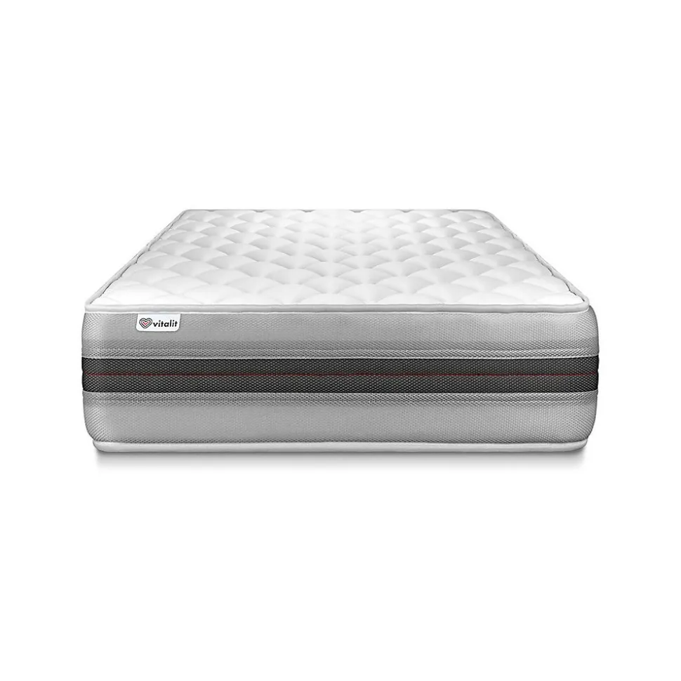 Faites le plein d’énergie positive grâce aux solutions de literie énergisantes Vitalit qui allient confort, maintien et souplesse et permettre à votre corps de prendre le temps de se revitaliser. Les matelas et sommiers Vitalit sont pensés pour s’adapter aux spécificités corporelles et au sommeil de chacun. De fabrication portugaise, les produits Vitalit sont rigoureusement élaborés selon des cahiers des charges précis. Jusqu’à la livraison, notre objectif : votre satisfaction.D’une épaisseur de 26 cm, le VITALMEMO BACK bénéficie des dernières innovations en matière de mousse à mémoire de forme. Son soutien ferme et son accueil moelleux s’adapte à votre morphologie, allège les points de pression et prévient les maux de dos. Son tissu micro perforé garantie une aération optimisée. Commencer votre journée avec énergie et vitalité avec notre matelas VITALMEMO BACK.Epaisseur 26 cmÂme 100% mousse polyuréthane Haute Densité 20 cmMousse polyuréthane à mémoire de forme D 55 kg + Mousse polyuréthane Soft HDFibres 100% Polyester 350G/M2Plate-Bande 3D micro-aérée 100% Polyester pour optimiser l’aération du matelasCoutil micro perforé ultra respirable 100% PolyesterConfort : ÉquilibréAccueil moelleuxSoutien fermeSommier Tapissier à lattes en kit à assembler soi mêmeNombre de lattes : 2 x 15 lattes multiplisStructure et traverses de renfort en pin massifTissu Maille 100% polyester 260 G/M2 respirableHauteur 14cm + Pieds acier 15cm (fournis)Adapté pour tous types de matelasMontage facile par une personne seule en moins de 15 minSommierSommier Tapissier à lattes en kit à assembler soi mêmeNombre de lattes : 15 lattes multiplisStructure et traverses de renfort en pin massifTissu Maille 100% polyester 260 G/M2 respirableHauteur 14cm + Pieds acier 15cm (fournis)Adapté <