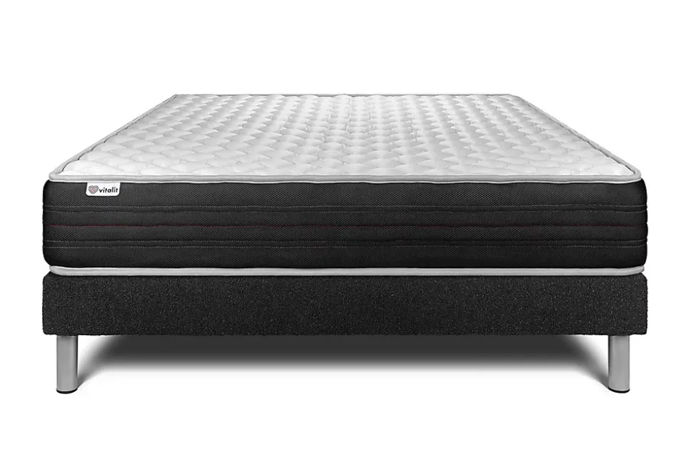 Faites le plein d’énergie positive grâce aux solutions de literie énergisantes Vitalit qui allient confort, maintien et souplesse et permettre à votre corps de prendre le temps de se revitaliser. Les matelas et sommiers Vitalit sont pensés pour s’adapter aux spécificités corporelles et au sommeil de chacun. De fabrication portugaise, les produits Vitalit sont rigoureusement élaborés selon des cahiers des charges précis. Jusqu’à la livraison, notre objectif : votre satisfaction.D’une épaisseur de 24 cm, le matelas VITALMEMO ONE incarne les dernières avancées technologiques dans le domaine de la mousse à mémoire de forme qui vous enveloppe avec douceur. D’un soutien ferme grâce à son âme en mousse polyuréthane Soft HD, ce matelas s’adapte parfaitement à votre morphologie, soulageant ainsi les points de pression. Son tissu micro perforé assure une circulation d’air optimale. Réveillez-vous frais et revitalisé avec le matelas VITALMEME ONE.Épaisseur : 24 cmÂme 100% mousse polyuréthane Haute Densité 15 cmMousse polyuréthane à mémoire de forme D 55 kg + Mousse polyuréthane Soft HDMousse Polyuréthane Hypersoft ultraconfortFibres 100% Polyester 350G/M2Plate-Bande 3D micro-aérée 100% Polyester pour optimiser l’aération du matelasCoutil micro perforé ultra respirable 100% PolyesterConfort : FermeAccueil : EnveloppantSoutien : FermeSommierSommier Tapissier à lattes en kit à assembler soi mêmeNombre de lattes : 2 x 16 lattes multiplisStructure et traverses de renfort en pin massifTissu Maille 100% polyester 855G/M2 respirable et résistant certifié OEKO-TEX Standard 100Hauteur 14cm + Pieds acier 15cm (fournis)Adapté pour tous types de matelasMontage facile par une personne seule en moins de 15 min Épaisseur : 24 cmÂme 100% mousse polyuréthane Haute Densité
