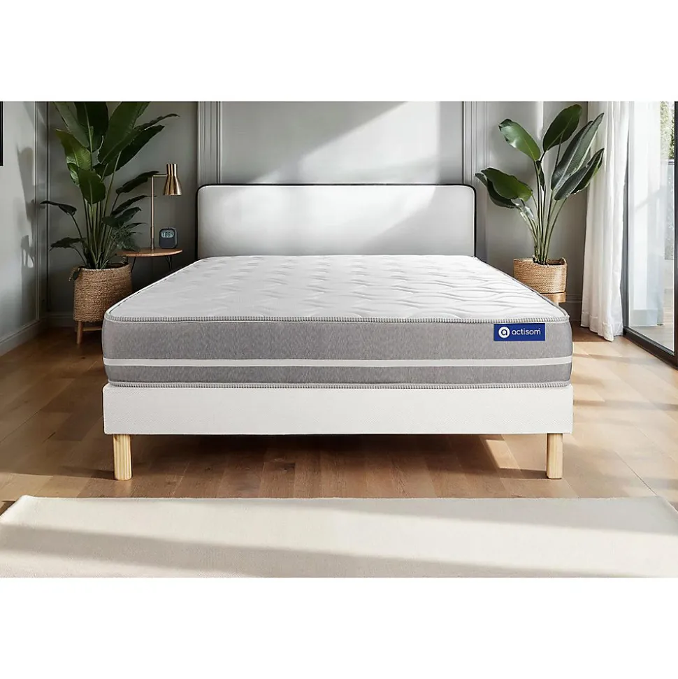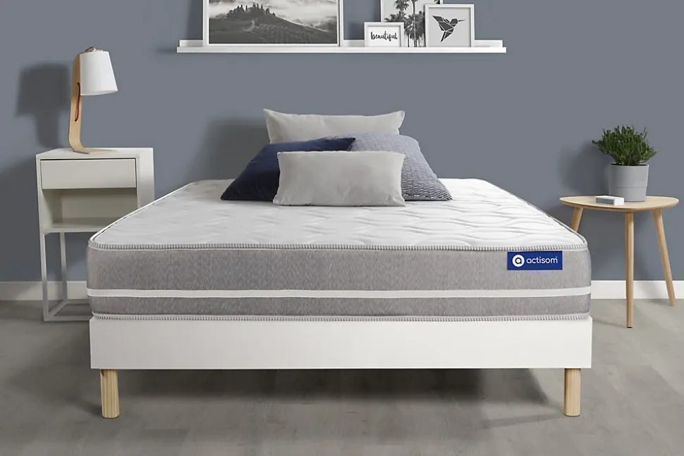 ACTISOM est une marque française développée en partenariat avec les plus grands experts européens du sommeil et de la literie. Après plusieurs années de recherche et de développement, nous avons mis au point des technologies innovantes (Actisoft – Actifresh – Acticell) afin de vous garantir d’excellentes nuits de sommeil. Tous nos matelas sont garantis 7ans et leur fabrication bénéficie d’un contrôle qualité très performant. Nos usines respectent les normes technologiques et environnementales européennes en vigueur.L’avis de notre expert: le modèle Actiflex TOUCH bénéficie d’un confort équilibré. Ce matelas hybride doté de 3 zones de confort est composé de 2 technologies : mousse Actisoft et ressorts ensachés. Cette association de technologies permet de bénéficier d’un soutien morphologique très précis et d’une parfaite indépendance de couchage. Elle vous assure donc une totale liberté de mouvement.• Epaisseur 20 cm• Plateau mousse polyuréthane actiSoft pour les 2 faces• Ame 744 ressorts ensachés ferme 15cm• Coutil 100% polyester micro-perforé ultra respirable• Confort Equilibré• Type de sommier : Tapissier à lattes démontable à assembler soi même• Épaisseur : 14 cm• Structure et traverses de renfort en pin massif• 2×15 lattes multiplis• Garnissage fibres 100% polyester 120G/M2• Tissu maille 100% polyester 260G/M2• Pieds : Bois 15cm fournis• Montage facile : le montage pourra être effectué par une personne seule en seulement 10 minutes • Epaisseur 20 cm• Plateau mousse polyuréthane actiSoft pour les 2 faces• Ame 744 ressorts ensachés ferme 15cm• Coutil 100% polyester micro-perforé ultra respirable• Confort Equilibré• Type de sommier : Tapissier à lattes démontable à assembler soi même• Épaisseur : 14 cm• Structure et traverses de renfort en pin massif• 2×15 lattes multiplis• Garnissage fibres 100% polyester 120G/M2• Tissu maille 1