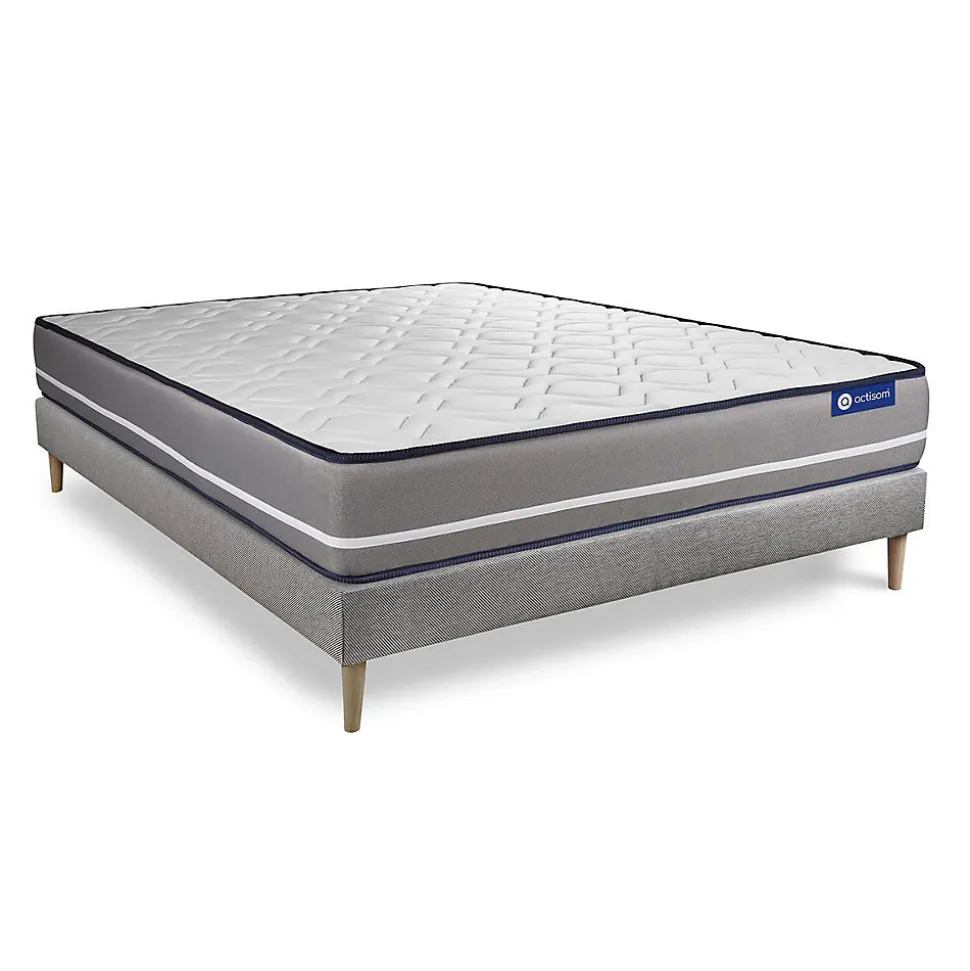 ACTISOM est une marque française développée en partenariat avec les plus grands experts européens du sommeil et de la literie. Après plusieurs années de recherche et de développement, nous avons mis au point des technologies innovantes (Actisoft – Actifresh – Acticell) afin de vous garantir d’excellentes nuits de sommeil. Tous nos matelas sont garantis 7ans et leur fabrication bénéficie d’un contrôle qualité très performant. Nos usines respectent les normes technologiques et environnementales européennes en vigueur.Actisom vous propose le matelas Actiflex PUR aux propriétés exceptionnelles, au confort unique et durable. Doté de la technologie Actisoft il procure un accueil particulièrement confortable. La technologie ressorts ensachés permet une parfaite ventilation du matelas et un soutien précis point par point de votre corps. Vos cycles de sommeil sont améliorés et vos douleurs dorsales sont soulagées.Epaisseur 20 cmPlateau mousse polyuréthane actiSoft pour les 2 facesAme 744 ressorts ensachés ferme 15cmCoutil 100% polyester micro-perforé ultra respirableConfort FermeType de sommier : Tapissier à lattes démontable à assembler soi mêmeÉpaisseur : 14 cmStructure et traverses de renfort en pin massif2x15 lattes multiplisGarnissage fibres 100% polyester 120G/M2Tissu maille 100% polyester 260G/M2Pieds : Bois 15cm fournisMontage facile : le montage pourra être effectué par une personne seule en seulement 10 minutes Epaisseur 20 cmPlateau mousse polyuréthane actiSoft pour les 2 facesAme 744 ressorts ensachés ferme 15cmCoutil 100% polyester micro-perforé ultra respirableConfort FermeType de sommier : Tapissier à lattes démontable à assembler soi mêmeÉpaisseur : 14 cmStructure et traverses de renfort en pin massif2x15 lattes multiplis<