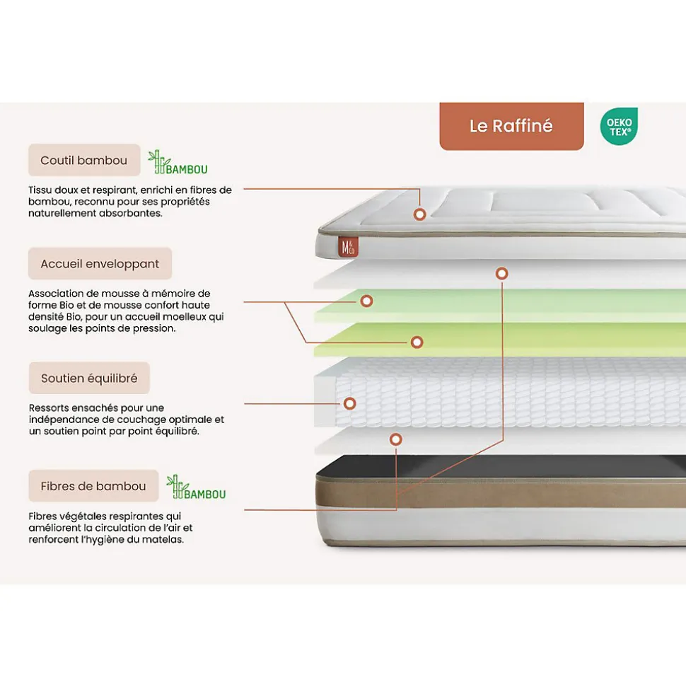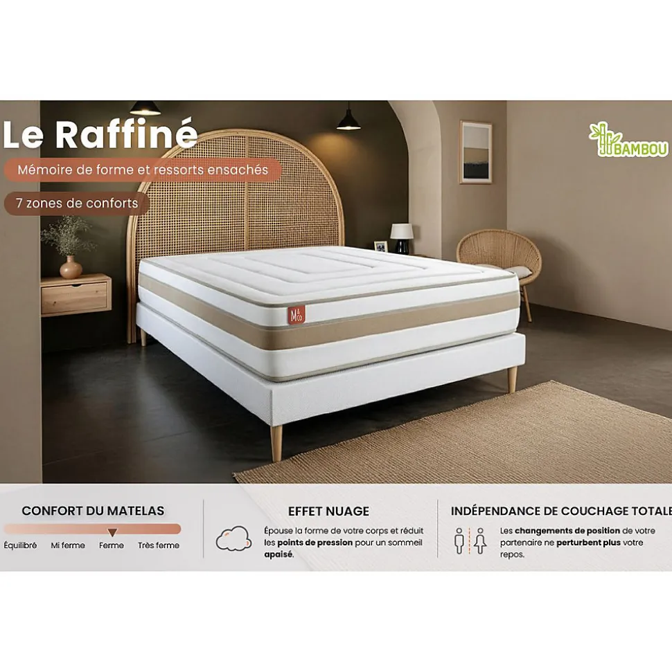 Ensemble Ressorts ensachés et mémoire de forme de confort Equilibré avec sommier kit
