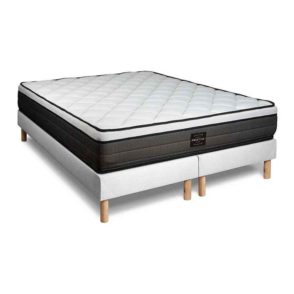 Produit à usage professionnel et particulier.Retrouvez le confort des plus grands hôtels chez vous avec les matelas et ensemble Prestige Literie. Riche d’une grande expérience dans le domaine de l’hôtellerie, nos ensembles et matelas Prestige Literie sont l’association de technologies innovantes et d’une fabrication de qualité pour vous apporter un sommeil 5 étoiles. Afin de vous convaincre de la qualité de nos produits, nous vous offrons 15 nuits d’essais satisfait ou remboursé. Nos produits sont garantie 10 ans et vous bénéficiez d’une livraison offerte.Un accueil moelleux et enveloppant grâce au surmatelas en mousse à mémoire de forme intégré. La technologie à ressorts ensachés se révèle être l’une des plus performantes en terme d’indépendance de couchage. Le matelas Suite vous apporte le confort absolu dont vous rêvez.MATELAS• Type de matelas : Mémoire de forme et ressorts ensachés• Epaisseur : 26 cm• Confort : Equilibré• Accueil : Enveloppant avec 4 cm de mousse polyuréthane à mémoire de forme + hypersoft• Soutien : Equilibré point par point composé de ressorts ensachés• Indépendance de couchage : Excellente• Coutil 100% polyester• Densité : 55 kg/m3• Certification : Oeko-TexSOMMIER• Type de sommier : Tapissier à lattes• Épaisseur :14 cm• 2×12 lattes en peuplier massif• Structure et traverses de renfort en peuplier massif• Garnissage fibres 100% polyester 260 G/M2• Plate bandes Tissu Maille 100% polyester 260G/M2• Toile de fond anti-poussières 100% polyester• Pieds : 15cm fournis MATELAS• Type de matelas : Mémoire de forme et ressorts ensachés• Epaisseur : 26 cm• Confort : Equilibré• Accueil : Enveloppant avec 4 cm de mousse polyuréthane à mémoire de forme + hypersoft• Soutien : Equilibré point par point composé de ressorts ensachés• Indépendance de couchage : Excellente• Coutil 100% polyester• Densité : 55 kg/m3