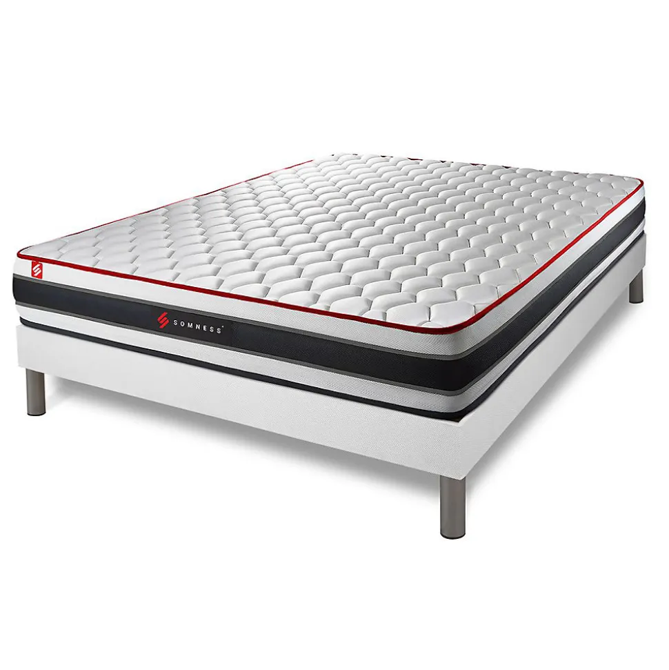 Le modèle ENERGY bénéficie d’un confort mi-ferme. Ce matelas hybride doté de 3 zones de confort est composé de 2 technologies : la mousse à mémoire de forme et ressorts ensachés. Cette association de technologies permet de bénéficier d’un soutien morphologique très précis et d’une parfaite indépendance de couchage. Elle vous assure donc une totale liberté de mouvement.- Type de matelas : Mémoire de forme- Epaisseur : 22 cm- Confort : ferme- Accueil : Ferme avec 2,5 cm de mousse polyuréthane à mémoire de forme + soft- Soutien : 609 Ressorts ensachés- Indépendance de couchage : Très bonne- Coutil 100% polyester microperforé ultra-respirable- Plate-Bande en tissu 3D micro-perforé 100% Polyester pour optimiser l’aération du matelas- Face de couchage : Réversible- Densité : 55 kg/m3- Certification : Oeko-Tex- Sommier tapissier- Multi 12 lattes en peuplier massif- Structure et traverses de renfort en peuplier massif- Garnissage fibres 100% polyester 120G/M2- Tissu Maille 100% polyester 260G/M2- Toile de fond anti-poussières 100% polyester- Hauteur 14cm + Pieds acier 15cm – Type de matelas : Mémoire de forme- Epaisseur : 22 cm- Confort : ferme- Accueil : Ferme avec 2,5 cm de mousse polyuréthane à mémoire de forme + soft- Soutien : 609 Ressorts ensachés- Indépendance de couchage : Très bonne- Coutil 100% polyester microperforé ultra-respirable- Plate-Bande en tissu 3D micro-perforé 100% Polyester pour optimiser l’aération du matelas- Face de couchage : Réversible- Densité : 55 kg/m3- Certification : Oeko-Tex- Sommier tapissier- Multi 12 lattes en peuplier massif- Structure et traverses de renfort en peuplier massif- Garnissage fibres 100% polyester 120G/M2- Tissu Maille 100% polyester 260G/M2- Toile de fond anti-poussières 100% polyester- Hauteur 14cm + Pieds acier 15cm