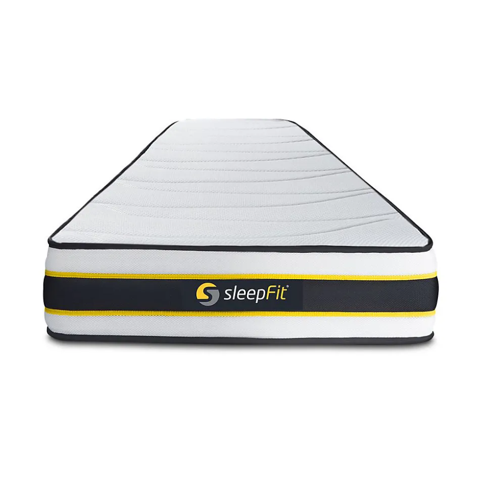 Sleepfit est une marque de matelas utilisés par les sportifs.Les matelas Sleepfit aspirent à vous offrir des nuits régénérantes et revitalisantes avec un soutien parfait du corps. Un matelas devrait toujours s’adapter à l’anatomie du corps et supprimer les points de pression susceptibles de bloquer la circulation sanguine. Quelle que soit votre morphologie vous obtiendrez une position de couchage idéale pour passer des nuits tranquilles, avec un sommeil de qualité propice à la décontraction musculaire.Le matelas FLEXY s’adapte à votre morphologie de sportif et procure un couchage de qualité en allégeant les points de pression. Le soutien équilibré point par point est apporté par les ressorts ensachés qui permettent une répartition homogène du poids du corps et une parfaite indépendance de couchage. L’accueil en mousse à mémoire de forme vise quant à elle à limiter les points de pression. Le corps a toutes les cartes en main pour se régénérer pendant la nuit et être d’attaque au réveil.- Type de matelas : Mémoire de forme et ressorts ensachés- Epaisseur : 22 cm- Confort : ferme- Accueil : Ferme avec mousse polyuréthane à mémoire de forme D55kg + mousse polyuréthane soft + Fibres 100% Polyester 350G/M2- Soutien : Ame 348 ressorts ensachés- Indépendance de couchage : Très bonne- Coutil : Tissu 100% polyester Micro perforé ultra-respirable- Bande latérale : Tissu 100 % polyester Micro perforé ultra-respirable- Face de couchage : Réversible- Certification : Label OEKO-TEX Standard 100- Nos matières premières sont certifiées par le label textile OEKO-TEX- Type de sommier : Sommier tapissier Monobloc- Nombre de lattes : Multi 12 lattes en peuplier massif- Structures et traverses de renfort en peuplier massif- Garnissage fibres 100% Polyester 120G/M2- Tissu Maille 100% polyester 260 G/M2- Toile de fond anti-poussières 100% polyester- Hauteur 14cm + Pie – Type de matelas : Mémoire de form