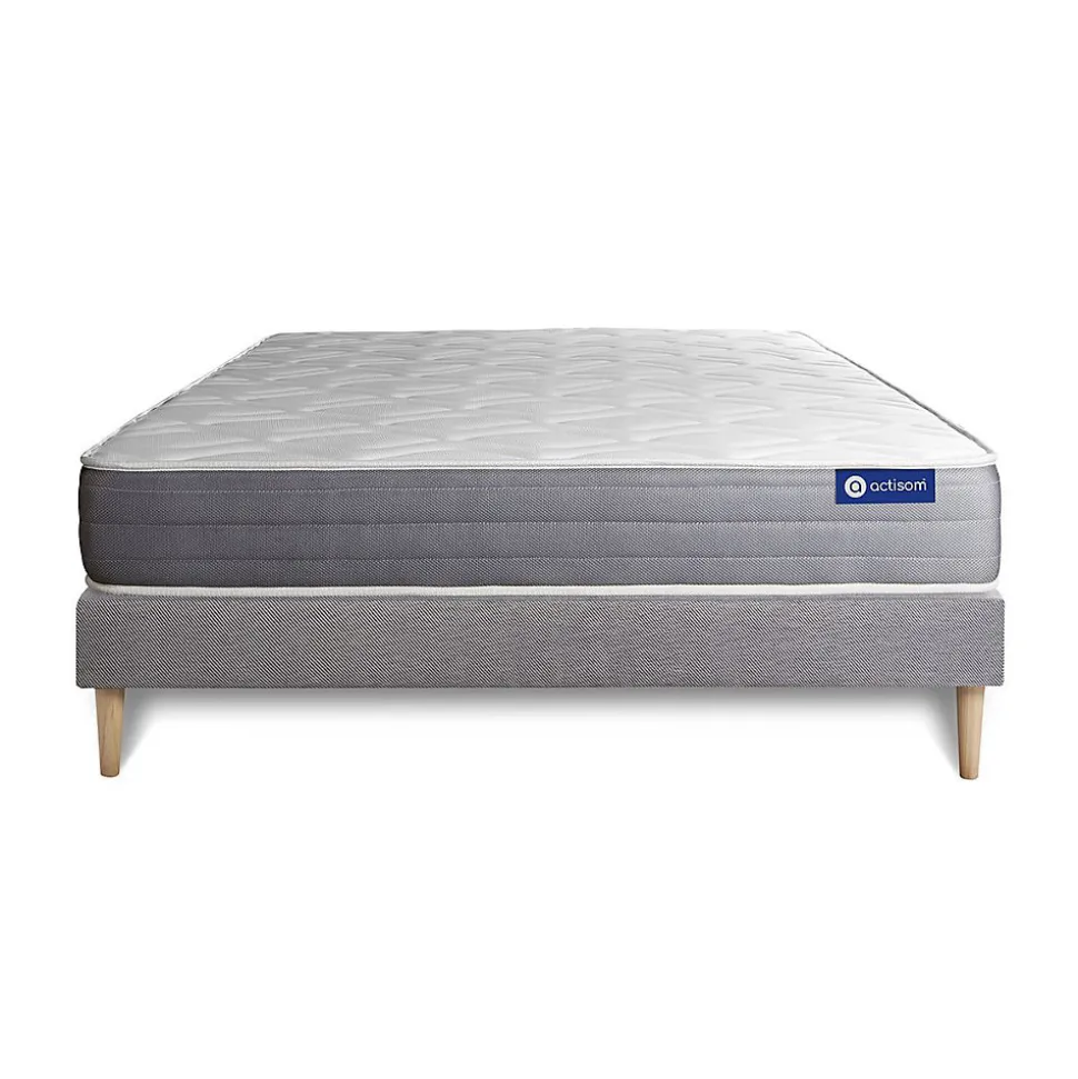 ACTISOM est une marque française développée en partenariat avec les plus grands experts européens du sommeil et de la literie. Après plusieurs années de recherche et de développement, nous avons mis au point des technologies innovantes (Actisoft – Actifresh – Acticell) afin de vous garantir d’excellentes nuits de sommeil. Tous nos matelas sont garantis 7ans et leur fabrication bénéficie d’un contrôle qualité très performant. Nos usines respectent les normes technologiques et environnementales européennes en vigueur.L’avis de notre expert : Le matelas Actiflex DREAM dispose de mousse à mémoire de forme sur les deux faces été et hiver. Elle permet de alléger les points de pression et d’apporter un confort exceptionnel en accueil. Son ame en ressorts ensachés vous procure un soutien précis de votre corps. Vos points de pression disparraissent pour offrir à votre morpholgie une récupération optimale pour un sommeil récupérateur.Epaisseur 22 cmPlateau pour les 2 faces 4cm Mousse polyuréthane à mémoire de forme + mousse polyuréthane actiSoftAme 609 ressorts ensachés ferme 15cmCoutil 100% polyester micro-perforé ultra respirableConfort Mi-fermeType de sommier : Tapissier à lattes démontable à assembler soi mêmeÉpaisseur : 14 cmStructure et traverses de renfort en pin massif2x15 lattes multiplisGarnissage fibres 100% polyester 120G/M2Tissu maille 100% polyester 260G/M2Pieds : Bois 15cm fournisMontage facile : le montage pourra être effectué par une personne seule en seulement 10 minutes Epaisseur 22 cmPlateau pour les 2 faces 4cm Mousse polyuréthane à mémoire de forme + mousse polyuréthane actiSoftAme 609 ressorts ensachés ferme 15cmCoutil 100% polyester micro-perforé ultra respirableConfort Mi-fermeType de sommier : Tapissier à lattes démontable à assembler soi même</