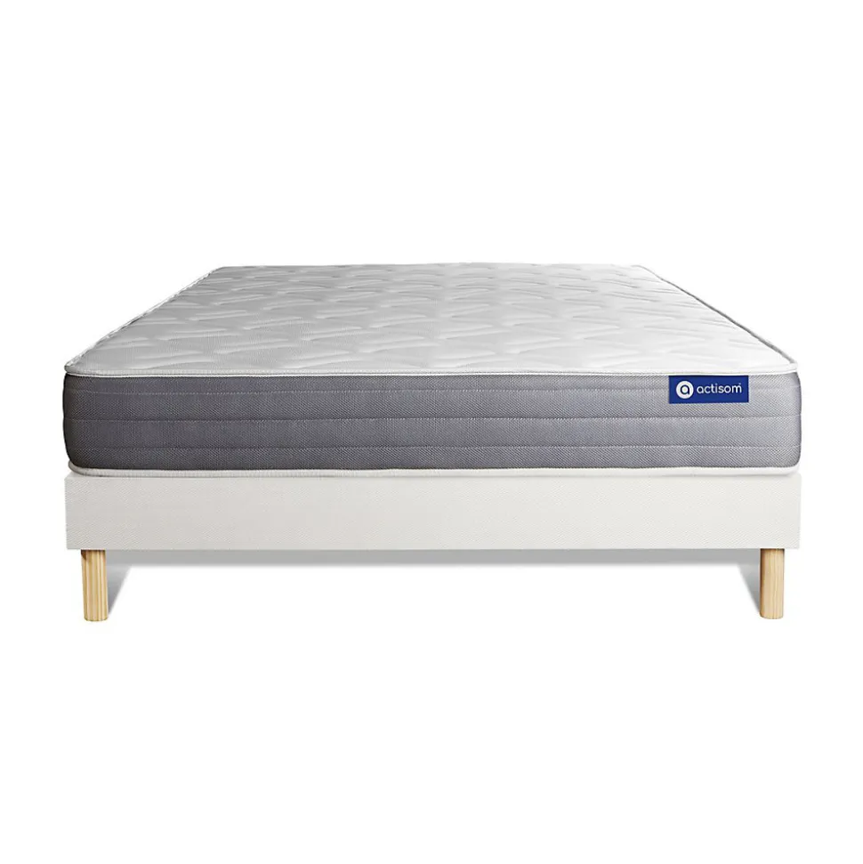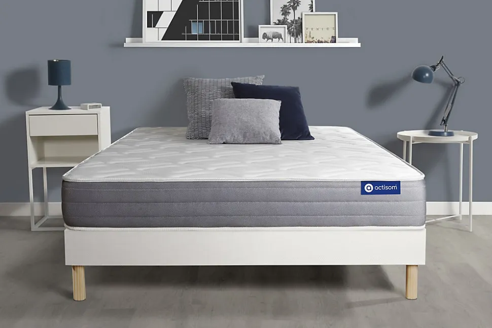 ACTISOM est une marque française développée en partenariat avec les plus grands experts européens du sommeil et de la literie. Après plusieurs années de recherche et de développement, nous avons mis au point des technologies innovantes (Actisoft – Actifresh – Acticell) afin de vous garantir d’excellentes nuits de sommeil. Tous nos matelas sont garantis 7ans et leur fabrication bénéficie d’un contrôle qualité très performant. Nos usines respectent les normes technologiques et environnementales européennes en vigueur.L’avis de notre expert : Le matelas Actiflex DREAM dispose de mousse à mémoire de forme sur les deux faces été et hiver. Elle permet de alléger les points de pression et d’apporter un confort exceptionnel en accueil. Son ame en ressorts ensachés vous procure un soutien précis de votre corps. Vos points de pression disparraissent pour offrir à votre morpholgie une récupération optimale pour un sommeil récupérateur.• Epaisseur 22 cm• Plateau pour les 2 faces 4cm Mousse polyuréthane à mémoire de forme + mousse polyuréthane actiSoft• Ame 961 ressorts ensachés ferme 15cm• Coutil 100% polyester micro-perforé ultra respirable• Confort Mi-ferme• Type de sommier : Tapissier à lattes démontable à assembler soi même• Épaisseur : 14 cm• Structure et traverses de renfort en pin massif• 2×15 lattes multiplis• Garnissage fibres 100% polyester 120G/M2• Tissu maille 100% polyester 260G/M2• Pieds : Bois 15cm fournis• Montage facile : le montage pourra être effectué par une personne seule en seulement 10 minutes • Epaisseur 22 cm• Plateau pour les 2 faces 4cm Mousse polyuréthane à mémoire de forme + mousse polyuréthane actiSoft• Ame 961 ressorts ensachés ferme 15cm• Coutil 100% polyester micro-perforé ultra respirable• Confort Mi-ferme• Type de sommier : Tapissier à lattes démontable à assembler soi même• Épaisseur : 14 cm• Structure et traverses de renfor