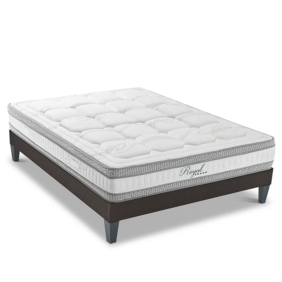 Dimensions disponibles (cm) : 90×190 – 90×200 – 140×190 – 140×200 – 160×200 – 180×200 – 200x200MatelasCARACTERISTIQUES :Epaisseur : 24 cmTechnologie : Mémoire de formeAccueil : EnveloppantSoutien : MediumIndépendance de couchage : 5/5Aération : 4/5Fabrication : FrançaiseNon déhoussableLivré compressé rouléGaranti 10 ansCOMPOSITION :Âme intérieure (certifiée CertiPUR) : 17 cm de mousse polyuréthane Haute Densité 28 kg/m³ + 2 cm de mousse viscoélastique à mémoire de forme 60 kg/m³ + 4 cm de mousse polyuréthane hypersoft 55 kg/m³Coutil (labellisé Oeko-Tex) : Tissu stretch polyester 300 gr/m²POINTS FORTS :Confort (équilibre entre fermeté et moelleux)Soutien et durabilité (base mousse polyuréthane haute densité)Ergonomie (mousse viscoélastique à mémoire de forme)Accueil doux (mousse polyuréthane hypersoft)Indépendance de couchage (limite les mouvements perçus entre partenaires)SommierCARACTERISTIQUES :Suspension : Tri-lattesHauteur (avec pieds) : 30 cmNombre de pieds : 4 (+1 en 160×200 et 180×200)Nombre de lattes : 24 ou 2x24Matière : Bois d’épicéa (cadre) / bouleau (lattes)Livré en kit (à monter soi même)Garanti 5 ansPOINTS FORTS :Transport et montage facilesRobustesse (structure en bois)Confort et soutien (tri-lattes)