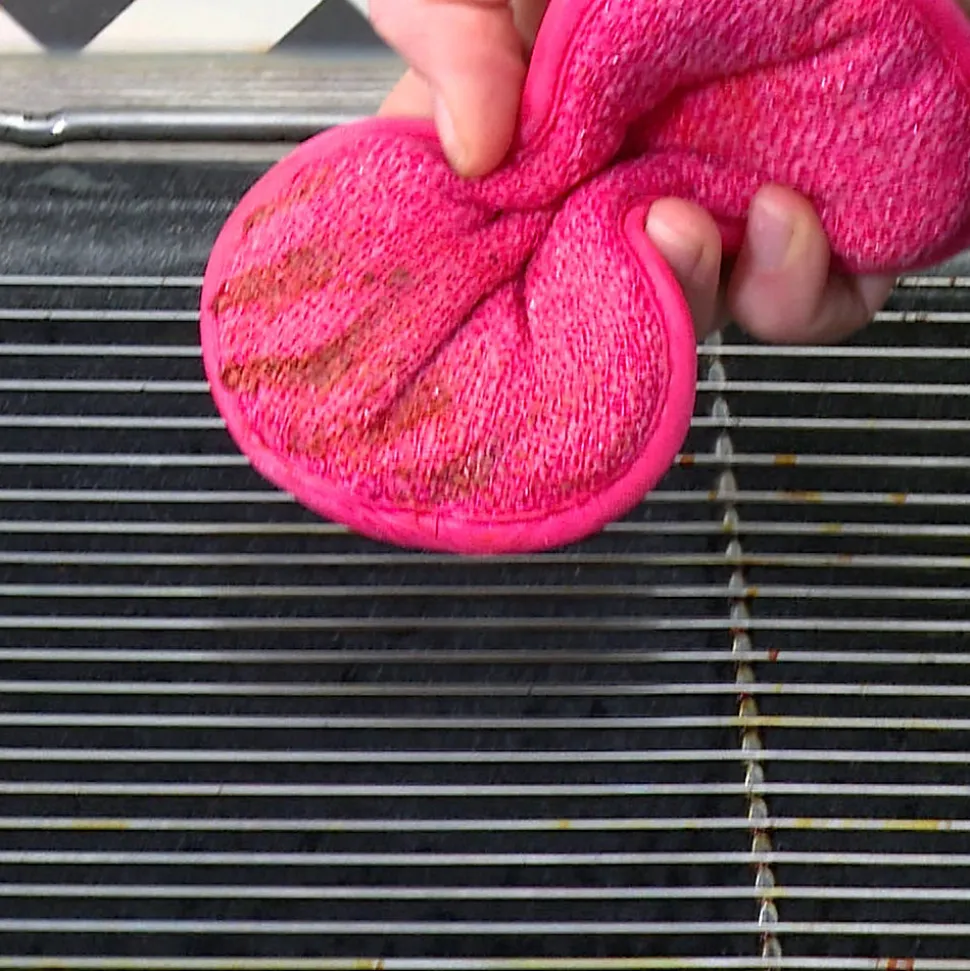 - 2 faces : 1 pour désincruster et 1 plus douce en microfibre