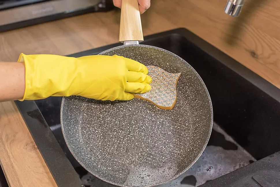 - Nettoie sans rayer vos plats délicats : poêles en téflon, ou fonte d’aluminium…