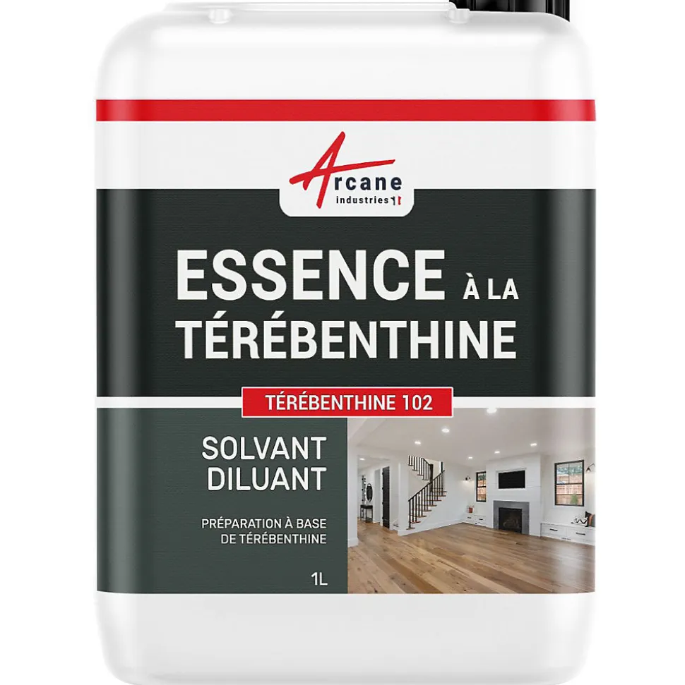 Notre essence à base de térébenthine est un solvant composé en partie d’essence de térébenthine pure gemme et de white spirit désaromatisé. D’un coût moins élevé, elle s’utilise de la même manière que l’essence pure gemme pour nettoyer et protéger le bois, les terres cuites.CONSOMMATIONVariable selon le mode d’application choisi : pur ou en dilution avec l’huile de lin ou la cire d’abeille.A titre indicatif :Selon support 8-12m²/LApplication : En tant que fabricant Français, nous mettons à disposition un document PDF disponible en bas de page vous indiquant les informations produits ainsi que les consignes d’application.La plateforme ne permet pas encore le regroupement des différents modèles. Pour voir toutes les contenances et toutes les couleurs, tapez ou copier-coller les termes suivants dans la barre de recherche : Essence à la térébenthine pour entretien bois, pierre, cuir… : TEREBENTHINE 102