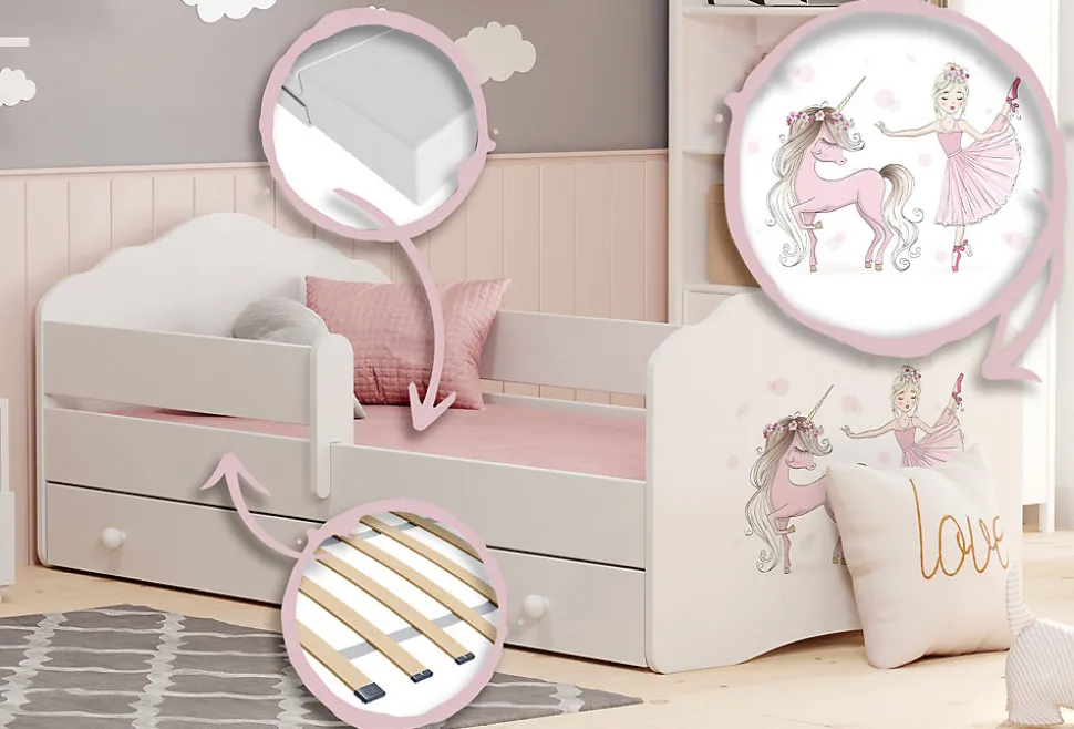 - Graphisme enfantin sur le devant – donne au lit un caractère féérique qui émerveillera chaque petite fille.