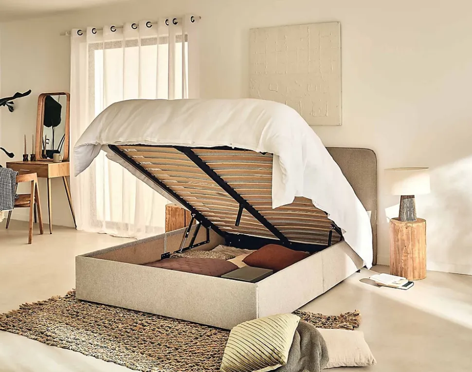 - Coffre de rangement et tête de lit intégrés