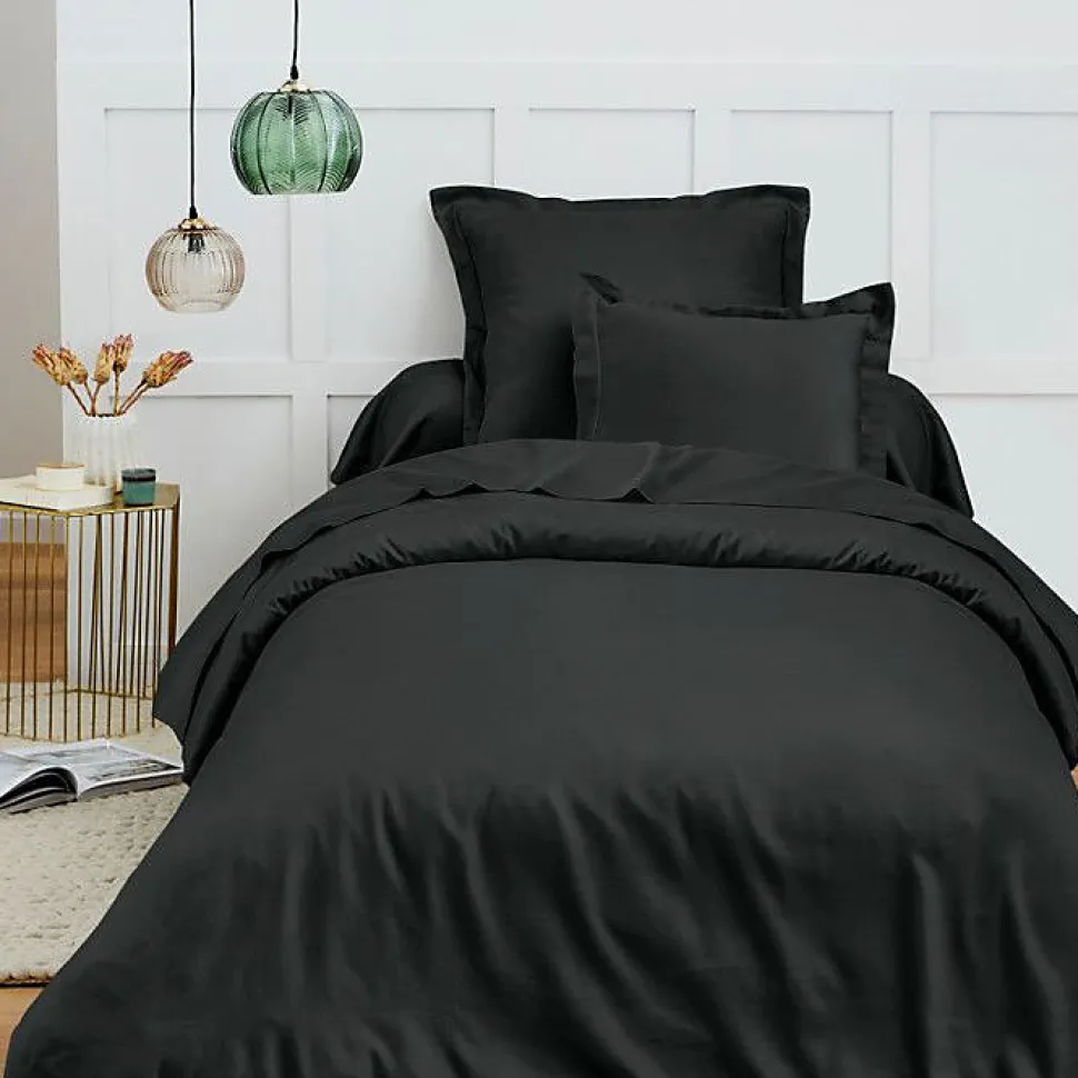 Housse de couette 100% coton Prémium 140 x 200 cm, tissage serré 57 fils/cm², coloris noir uni, certifiée Oeko-Tex, lavable en machine à 40°, respirante, douce et robuste, coordonnable avec la collection Prémium.