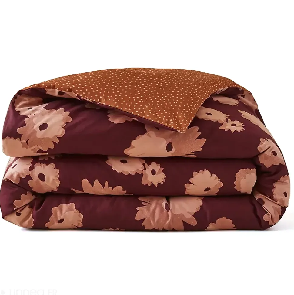 - Achetez la housse de couette satin de coton COUP DE FOUDRE prune/caramel avec des motifs floraux.