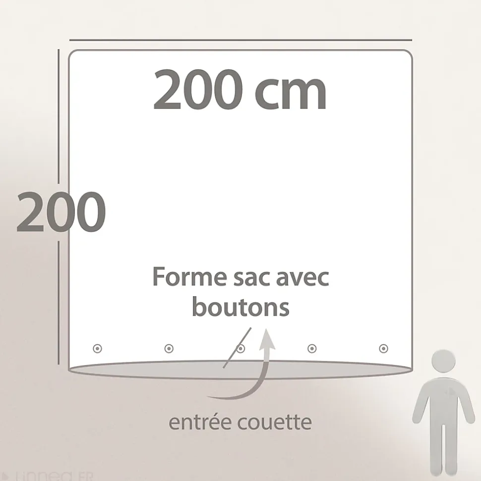 Housse de couette lin froissé 200×200 cm SONATE bleu TopazePlongez dans un univers de confort et d’élégance avec la collection SONATE, conçue pour habiller votre maison avec douceur et raffinement. Fabriquée en lin lavé, cette gamme polyvalente se décline en linge de lit et en rideaux, offrant des pièces pensées pour apporter une atmosphère apaisante et naturelle à votre intérieur. La texture subtilement froissée et le toucher agréable du lin lavé en font un incontournable pour ceux qui recherchent à la fois simplicité et sophistication.Le lin lavé, matière noble et intemporelle, confère à cette collection une qualité exceptionnelle. Naturellement respirant, il régule la température pour un confort optimal en toutes saisons. Sa douceur s’accentue au fil des lavages, rendant chaque pièce encore plus agréable à utiliser. De plus, ce matériau durable et résistant assure une longévité remarquable, faisant de la collection SONATE un investissement idéal pour votre maison.Avec ses finitions soignées et son style épuré, chaque article de la gamme s’intègre harmonieusement dans différents univers décoratifs, du classique au contemporain. Draps housses, draps plats, housses de couette, taies d’oreiller et de traversin apportent une touche naturelle à votre chambre, tandis que les rideaux SONATE complètent avec élégance vos espaces de vie, filtrant la lumière tout en créant une ambiance douce et chaleureuse.La polyvalence de cette collection permet de jouer avec les textures et de créer une harmonie entre vos espaces. Que ce soit pour envelopper votre lit dans un cocon de confort ou pour habiller vos fenêtres avec des rideaux aériens, SONATE répond à toutes vos envies de décoration. Les finitions impeccables, comme les bordures précises et les détails subtils, témoignent d’un savoir-faire textile exceptionnel.Facile à entretenir, la collection SONATE est conçue pour simplifier votre quotidien. Lavable en machine, elle conserve son as