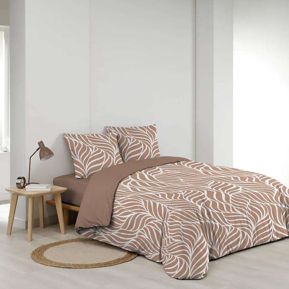 - • Motif végétal élégant et tendance• Coloris mocha chaud et raffiné• Coton 57 fils respirant et confortable• Fermeture boutons pression pratique et discrète• Parure complète prête à l’emploi• Confort idéal en toute saison