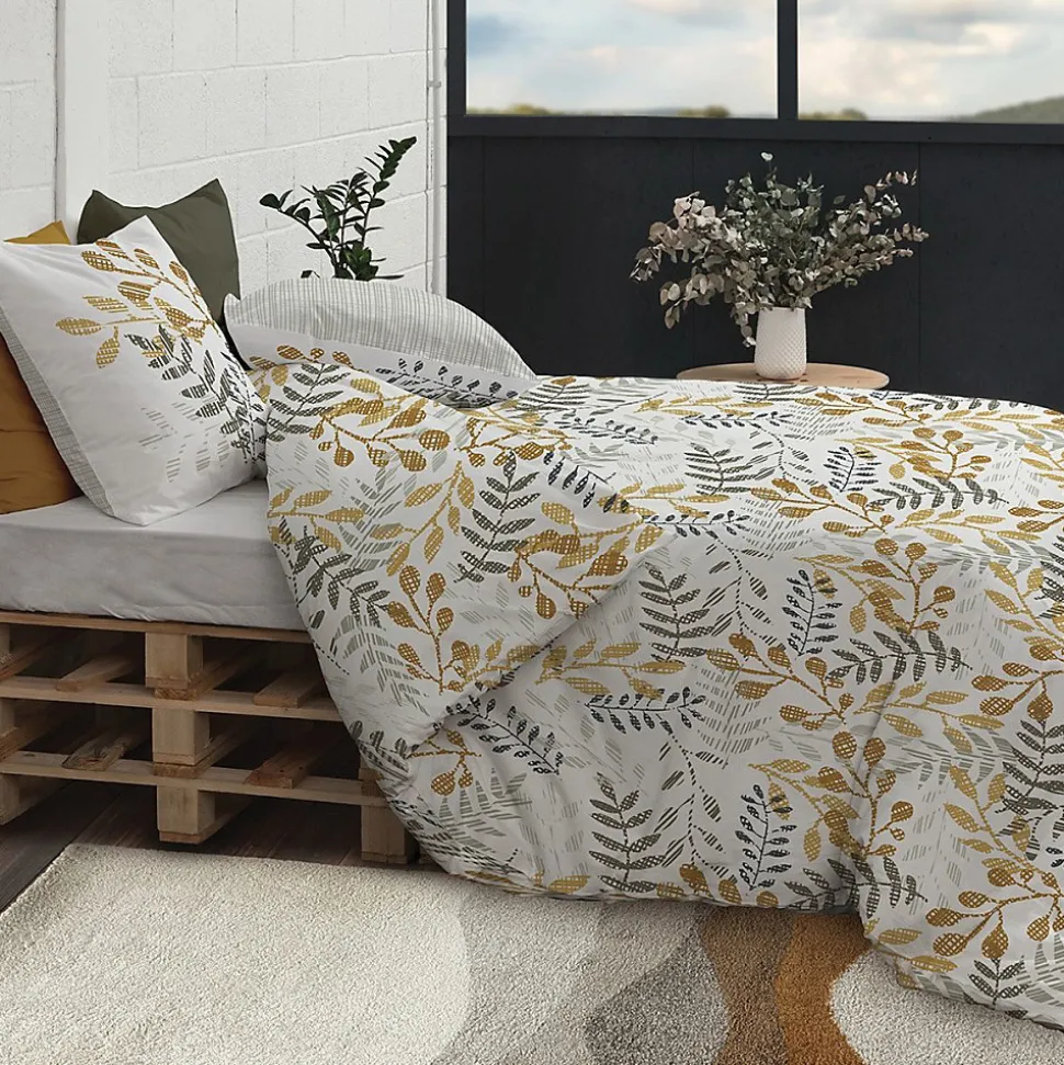 Très belle housse de couette Eloa pour lit 2 personnes grande largeur de dimensions 260×240 cm en 100% coton bio à tissage très serré 57 fils avec ses 2 taies d’oreillers 63×63 cm.Parez votre lit élégamment avec cette jolie et confortable housse de couette au motif graphique très tendance alliant douceur et résistance.Information sur la housse de couette Eloa :Dimensions housse de couette : 260×240 cmDimensions oreillers : 63×63 cmFinition : housse de couette boutons et taie portefeuilleMatière : 100% coton bio 57 fils/cm² Consignes d’entretienlavage machine basse température (40° C maxi)Blanchiment interditRepassage à température modéréeNettoyage à sec interditProgramme de séchage modéré