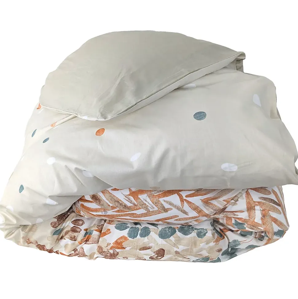 - Housse de couette 280×240 cm EVASION pêche 100% coton avec des motifs de végétation marron, orange et vert