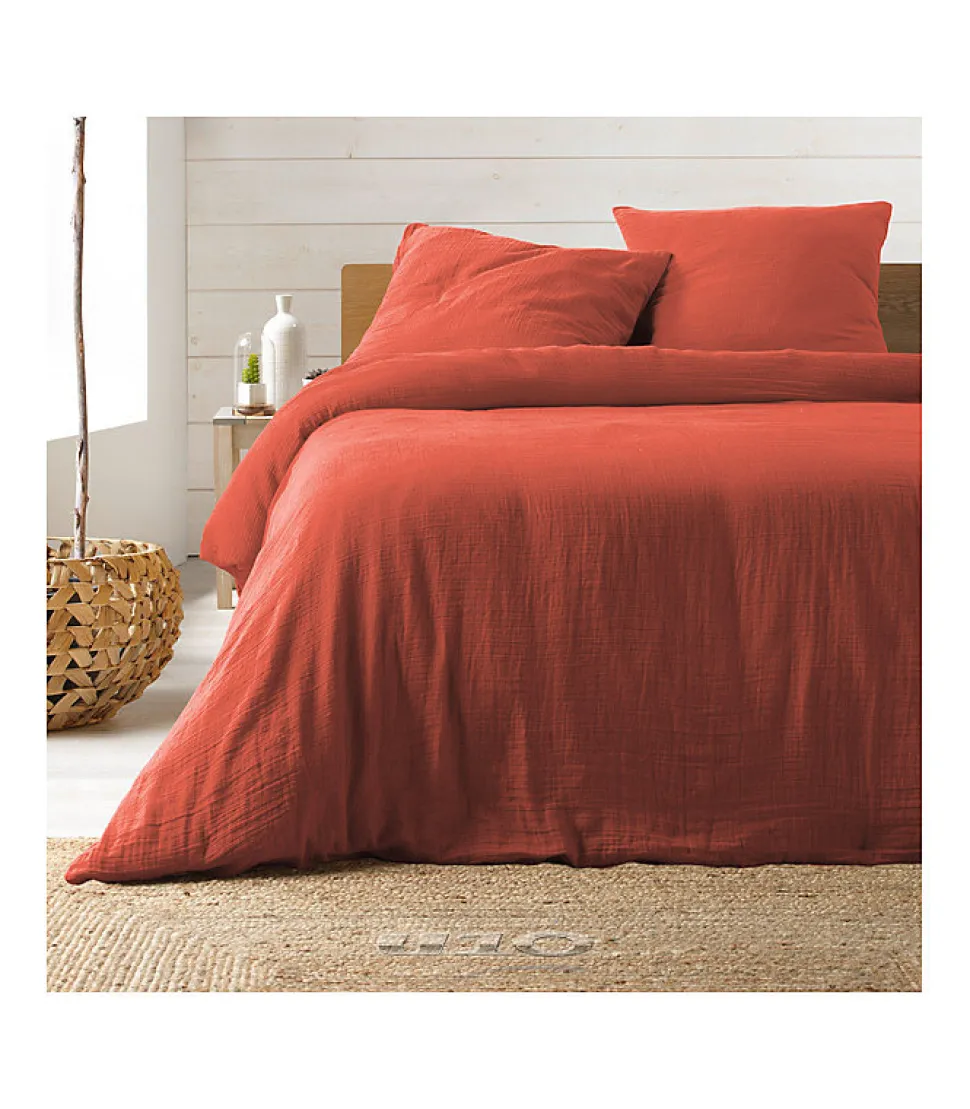 Housse de couette double gaze coton uni Terracotta – 220x240cm – Terre cuite