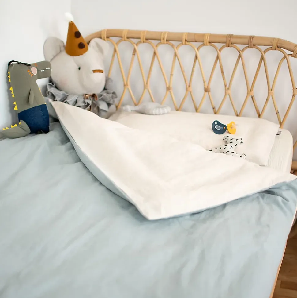 La housse de couette bicolore pour enfant en lin, douce et confortable pour offrir votre enfant un sommeil incomparable. Disponible en deux tailles.