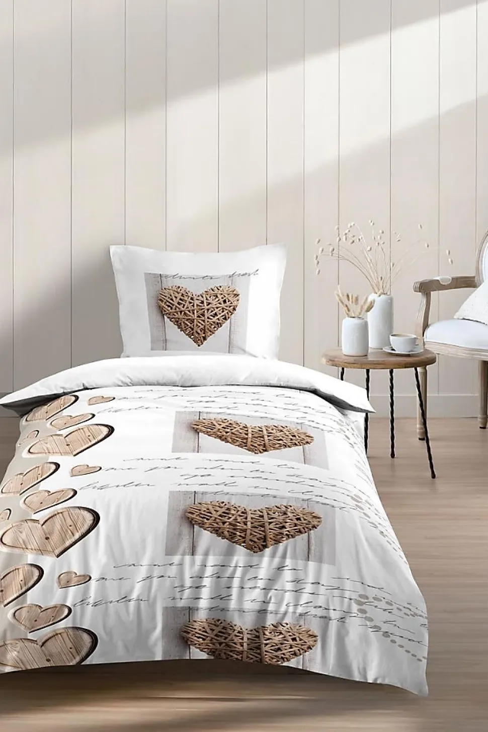 Apportez une touche romantique et naturelle à la chambre avec cette parure de lit ornée de cœurs en rotin. Réalisée en pur coton de qualité, elle allie confort, douceur et charme authentique. Caractéristiques : Dimensions : Housse de couette 240 x 260 cm + 1 taie d’oreiller 63 x 63 cm Composition : 100% coton, 57 fils/cm², coton imprimé Certification Oeko-Tex : garantit l’absence de Entretien : Lavage à 40°, séchage modéré, repassage à 150° Dessin placé pour un rendu harmonieux Les accessoires présents sur le visuel ne sont pas inclus …