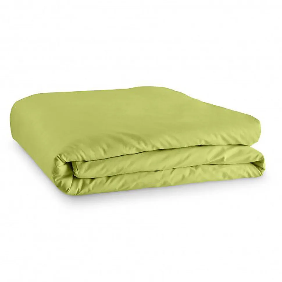 Housse de couette unie 260 x 240 cm en 100% coton, tissage serré 57 fils/cm². Couleur anis, certifiée Oeko-Tex. Entretien facile, tenue des coloris au lavage à 40°. Adaptée aux lits 2 places King Size (160×200 à 180×200).