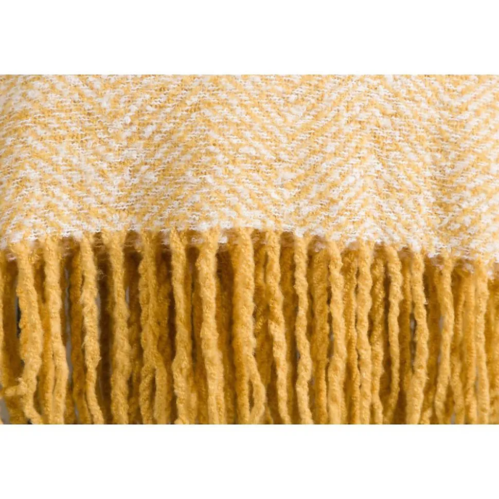Aspect : Coloris = Blanc Jaune • Matériau principal = Polyester • Dimensions : Hauteur (en cm) = 0,50 • Longueur (en cm) = 170 • Profondeur (en cm) = 130 • Jeté de canapé à motif chevrons Toby 170 x 130 cm